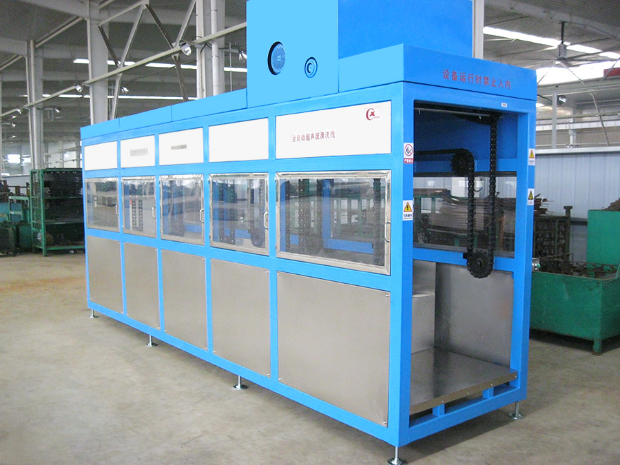 該設(shè)備有自動(dòng)上下料及轉(zhuǎn)角系統(tǒng)、超聲波清洗系統(tǒng),自動(dòng)拋動(dòng)、自動(dòng)溢流和油污分離裝置,噴淋系統(tǒng)、自動(dòng)高壓切水系統(tǒng)、自動(dòng)烘干系統(tǒng)。機(jī)械手自動(dòng)輸送系統(tǒng)采用高精度直線導(dǎo)軌配合高精度位置檢測(cè)傳感器,機(jī)械手可以準(zhǔn)確的實(shí)現(xiàn)工件的抓取和放置。自動(dòng)進(jìn)排液和自動(dòng)加溫系統(tǒng)完全實(shí)現(xiàn)了無人干預(yù),自動(dòng)運(yùn)行,很大程度上降低了工人的勞動(dòng)強(qiáng)度。先進(jìn)的霧氣處理系統(tǒng)可以將清洗時(shí)產(chǎn)生的霧氣冷凝回流,空氣經(jīng)過濾和活性炭吸附后排出。